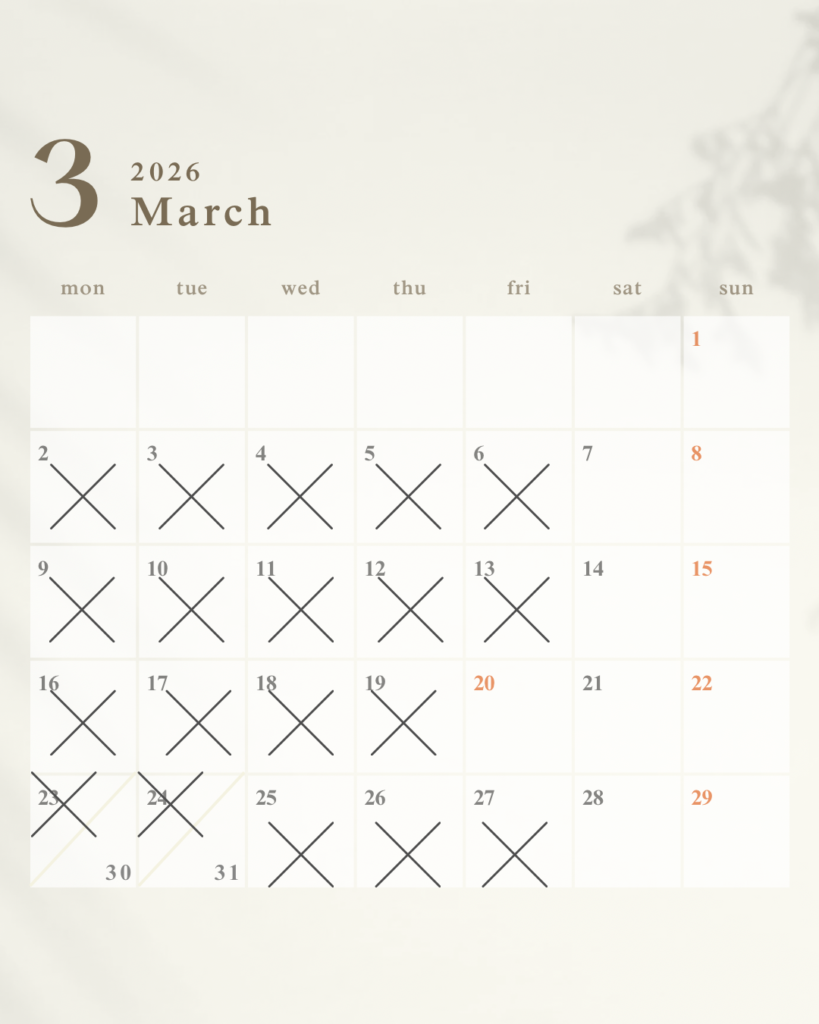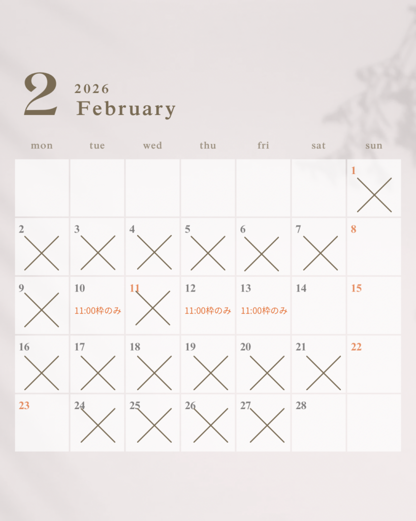 ※✖以外のお日にちがご予約可能日です。